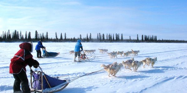 Enjoy exploring the Mackenzie Delta by dog team. Compared to the Fun Run this is a longer, quieter and more relaxing tour where you can enjoy some spectacular natural scenery to its fullest. You will be following your guide's team on a short part of the Fun Run route and then onto the Mackenzie River and down a beautiful creek, then onto a big lake and return through the Boreal forest. This is the way to see the Mackenzie Delta in its pristine winter glory!